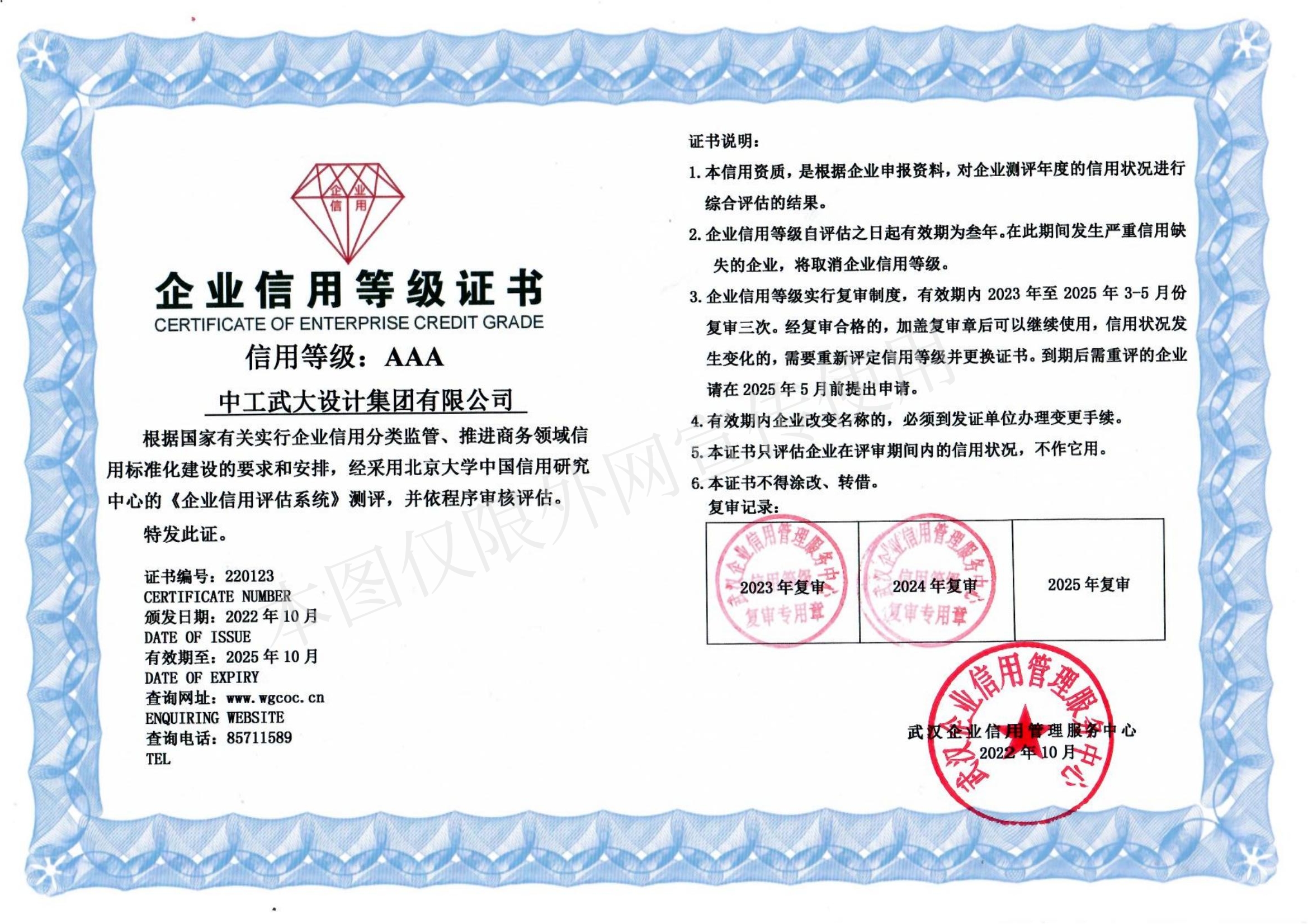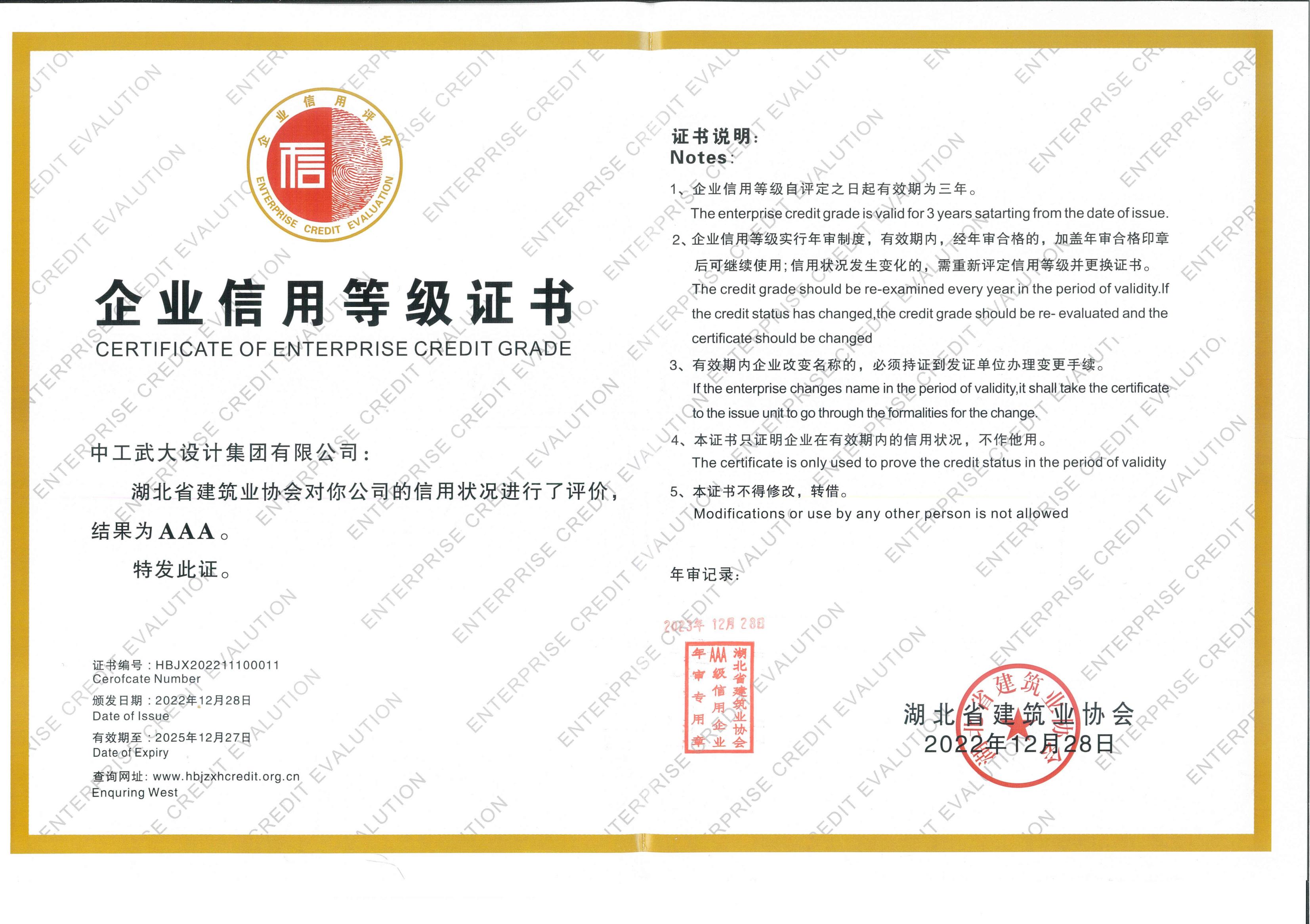 企业信用等级证书AAA