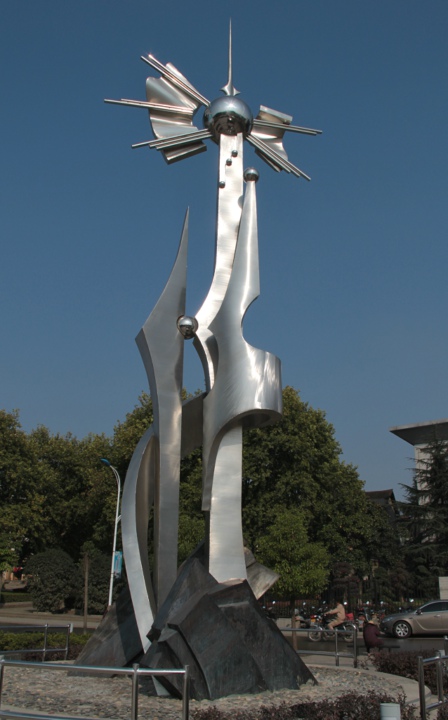该地标雕塑高12米,底部宽约3.5米,由锻不锈钢、锻铜两种材质组成。项目主要包括地标雕塑的设计、制作和安装,由设计师全程负责,很好的体现了最初的设计思想。
