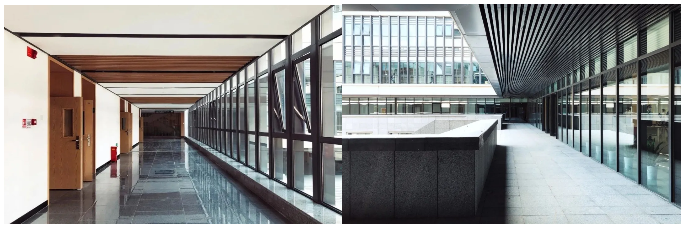 在色彩上采用与原工学部建筑群统一的青灰色彩,衬托出历史建筑群的鲜明色彩以及珞珈山山体的自然风貌。