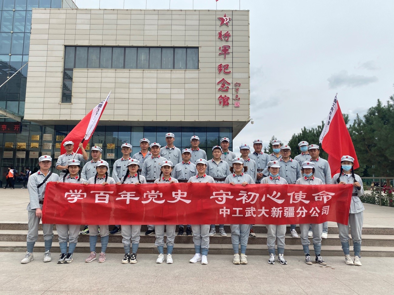 为扎实开展党史学习教育,缅怀革命先烈,传承红色精神,凝聚奋进力量,6月25日,新疆分公司党支部组织了“学百年党史,守初心使命”的党建带团建活动,赴新疆兵团第六师五家渠市将军纪念馆参观学习。