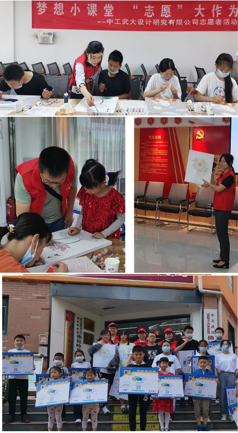 公司党总支部办公室主任杜萍代表公司党总支部将公司党员捐赠的少儿读物赠送给社区,使社区儿童享受阅读的乐趣,助力孩子们健康成长。公司职能部门党支部志愿者小分队在社区书记舒邦胜的带领下依次走访了11户困难家庭的17个孩子。每到一户,志愿者都关心询问孩子们的健康和学习情况,并送上文具盒、作业本、彩笔、考试用具和跳绳等文具和体育用具,陪伴孩子们提前过了一个愉快温馨的儿童节。园林生态公司党支部志愿者小分队在书记张青云的带领下,利用专业特长,开展了“梦想小课堂 志愿大作为”之油画彩绘活动,志愿者们向孩子们教授了荷花、向日葵等主题的彩绘,一方面引导孩子树立和谐共生的核心价值观,另一方面鼓励孩子们积极向上,争做阳光少年。