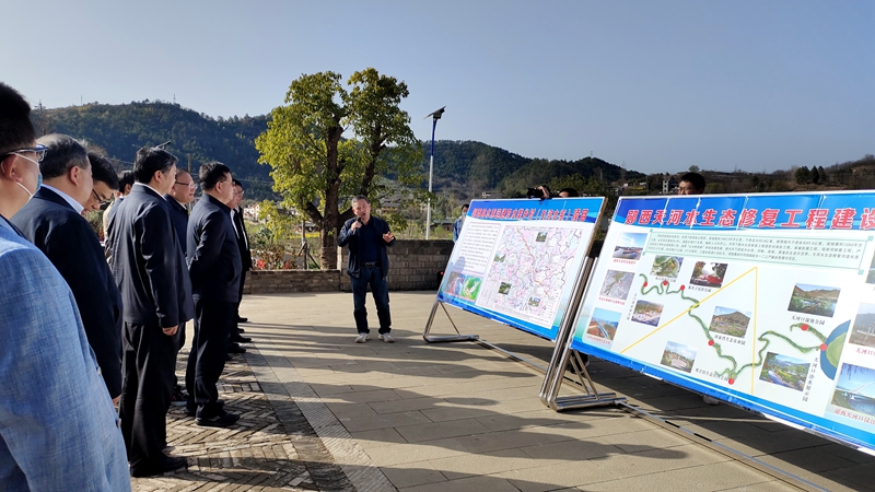 蒋旭光一行实地考察公司参建水利项目郧西县天河水系连通及水美乡村建设项目、金钱河流域生态治理及水系连通工程,认真听取了公司水务设计院柳卓副院长对项目申报方案、设计思路、设计布局等内容的介绍。蒋旭光一行对郧西“以水为重,谋划项目”的做法表示高度赞赏,也对项目治理后的效果表示了肯定。