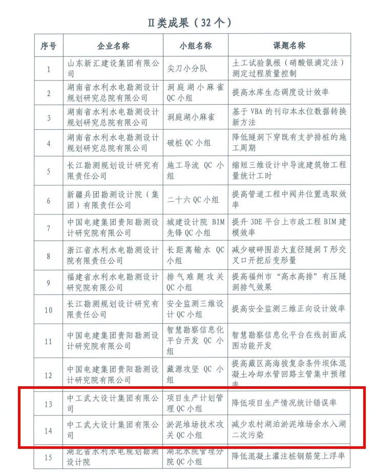 近日,中国水利水电勘测设计协会开展2022年水利水电勘测设计行业质量管理小组活动成果竞赛,公司申报的四项QC成果荣获成果竞赛Ⅰ类、Ⅱ类优胜成果。