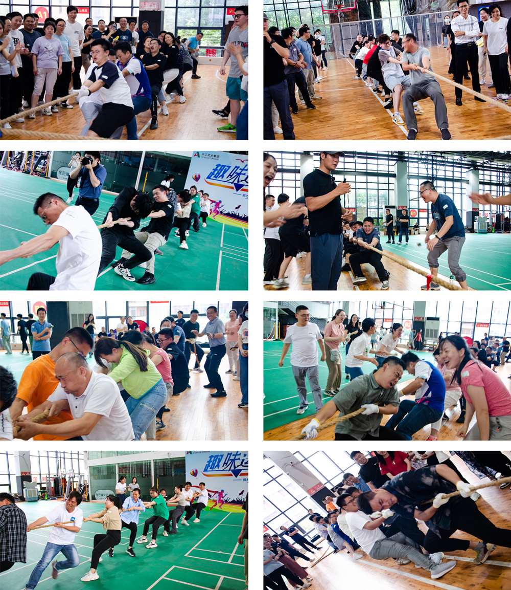 本次趣味运动会设定了“四方拔河、冰壶、跳绳、无敌风火轮”4个团体项目和“眼疾手快、沙包掷准”两个单人项目,团体项目共9支队伍参赛,个人项目共224人参加。在比赛中,参赛选手们表现出了极高的技巧和配合度,用汗水和努力,为自己和团队赢得荣誉和赞赏。