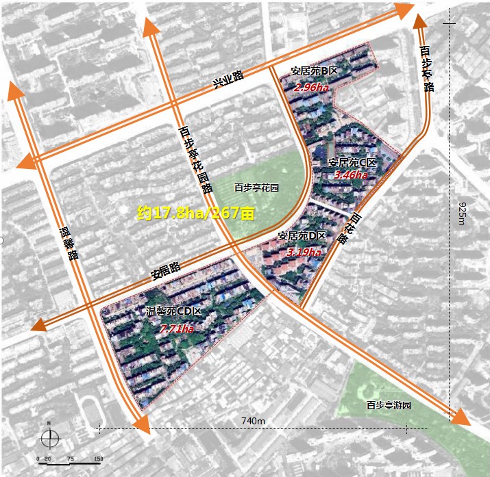 项目位于江岸区百步亭社区,范围涉及 4 个片区分别为:安居苑B区、安居苑C区、安居苑D区、温馨苑 CD 区。包括 63栋楼19单元,总户数 3216户,居住人数6804人,改造建筑面积331245平米。 更新内容包括:基础设施改造、道路通行改造、消防安防改造、房屋修缮改造、公共环境改造和公共服务升级等。百步亭社区是全国文明社区示范点,曾先后荣获全国先进基层党组织、全国文明社区、全国和谐社区、首届“中国人居环境范例奖”等100多项国家级奖项。本次更新改造将以争创住建部全国示范项目为目标,全力打造武汉地区城市更新样板工程。
